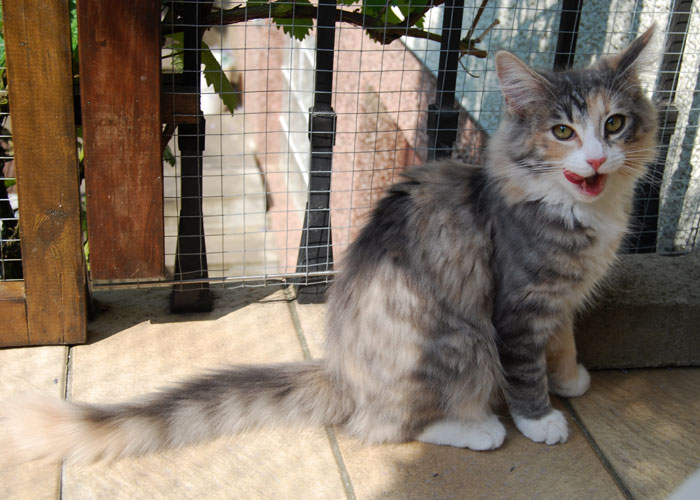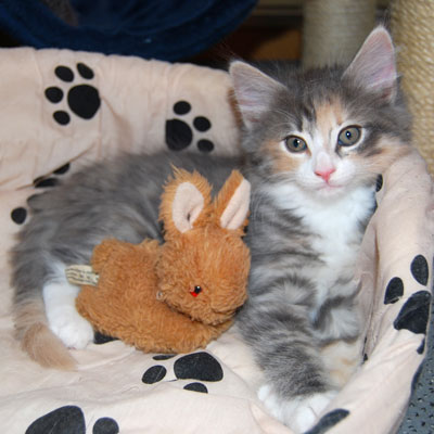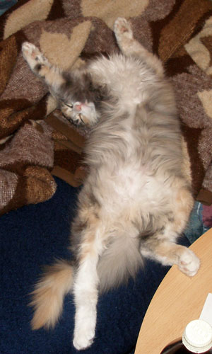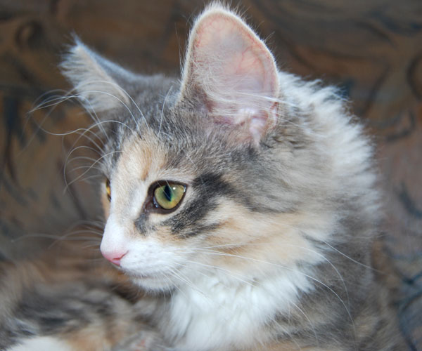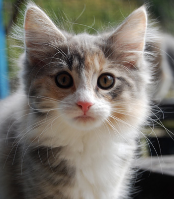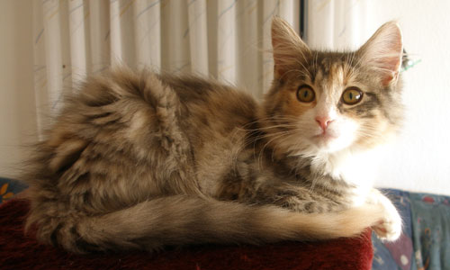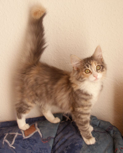 Unser Püppchen, immer bedacht eine gute Figur zu machen. Aber wenn's drauf ankommt, tobt sie mit den Jungs um die Wette. Unsere Prinzessin hat eine wunderschöne Creme-Verteilung mit cremefarbenem Schwanzbommel. Belana ist anhänglich und verschmust und probt unablässig für die Schnurr-Weltmeisterschaften.