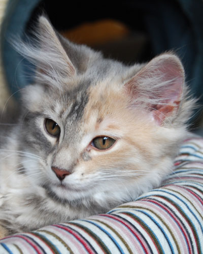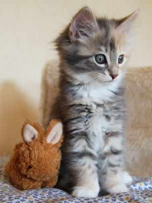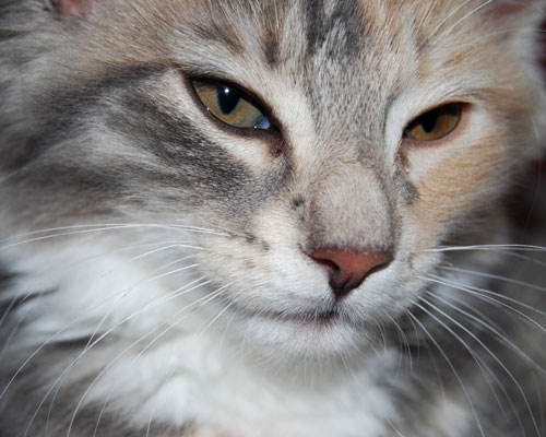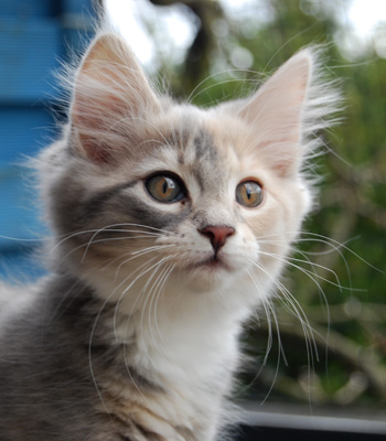 Ich bin 2 Katzen: Auf der linken Seite bin ich ein ganz helles Köpfchen. Von rechts zeigt sich dann meine dunkle Seite. Aber keine Angst, ich bin eine ganz Liebe.