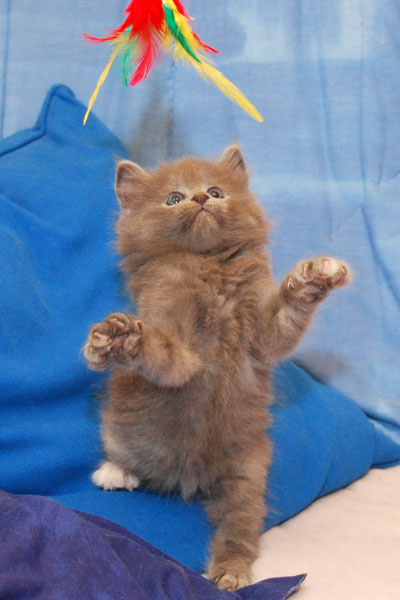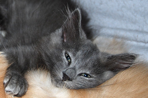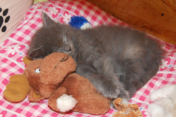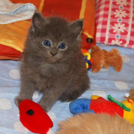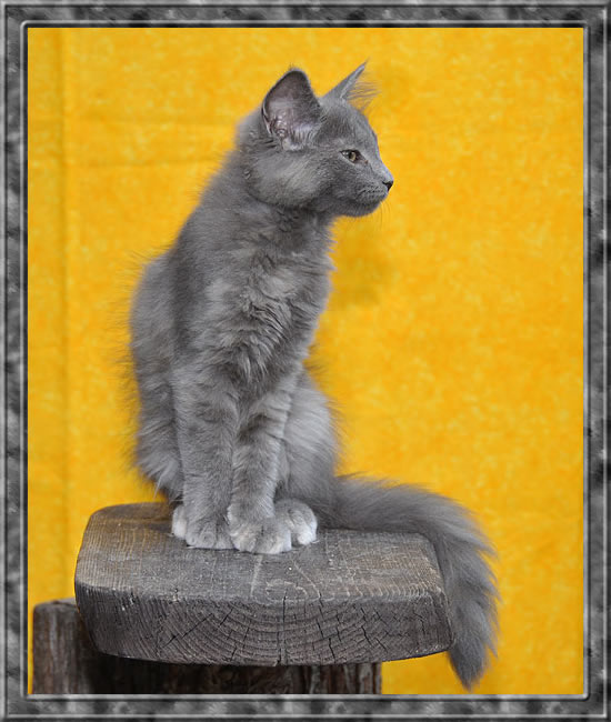 Unsere Lady ist ein besonders kräftiges Mädchen. Beim Körpergewicht liegt sie immer nur ganz knapp hinter ihren Brüdern. Das extra lange Fell unterstreicht noch ihre imposante Erscheinung. Entsprechend burschikos kommt sie daher und lässt sich von ihren Geschwistern nicht so schnell die Butter vom Brot nehmen.