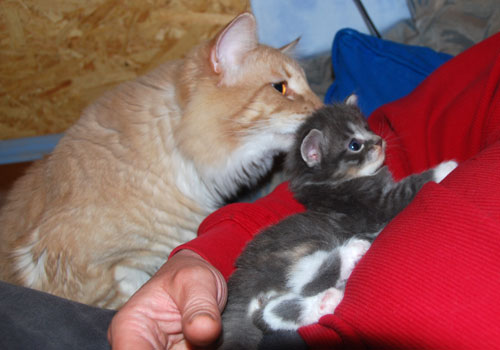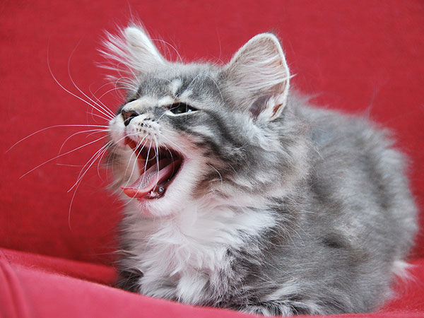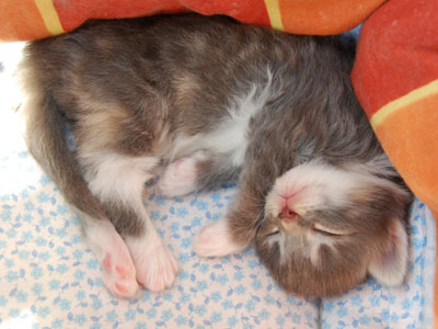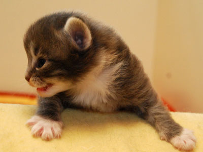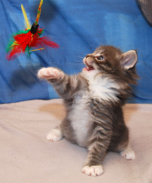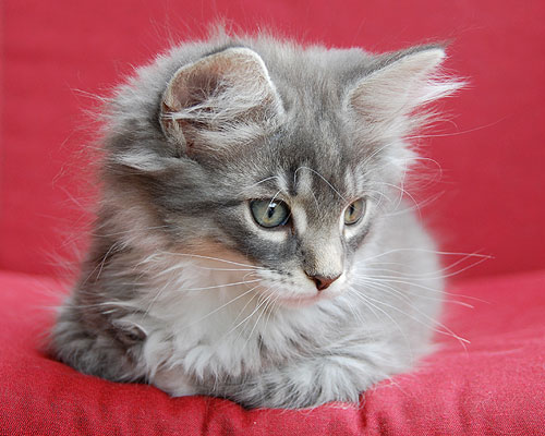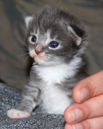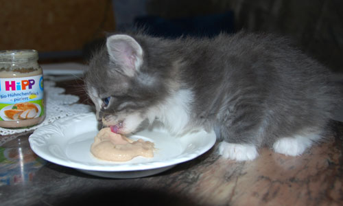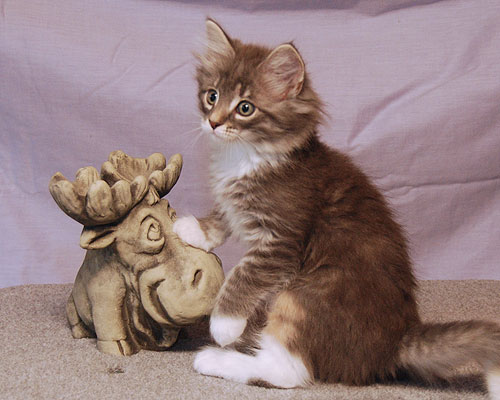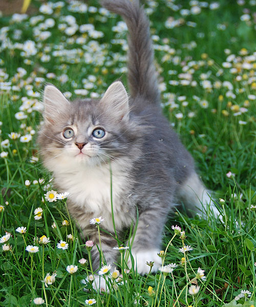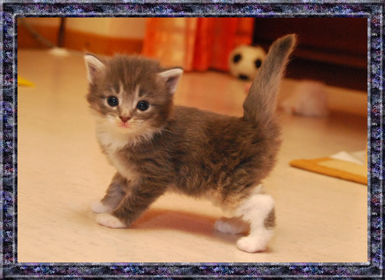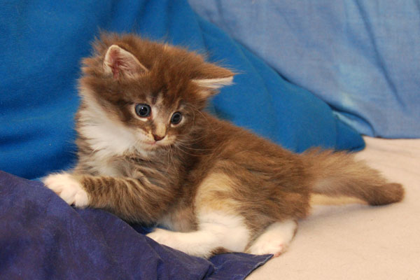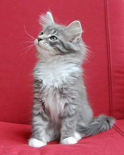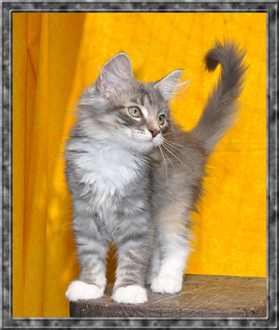 Obwohl im Gewicht gleichauf mit ihrer Schwester, wirkt Carina optisch graziler. Behende tänzelt sie umher, genauso putzig wie ihre Mama als Kind gewesen ist. Besonders gerne präsentiert sie ihren schönen weißen Bauch.