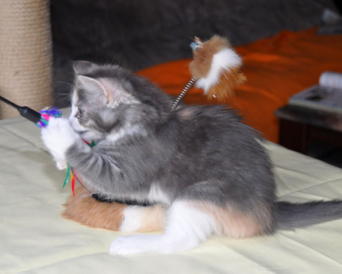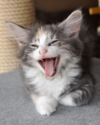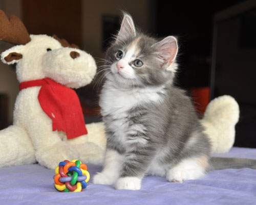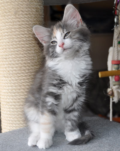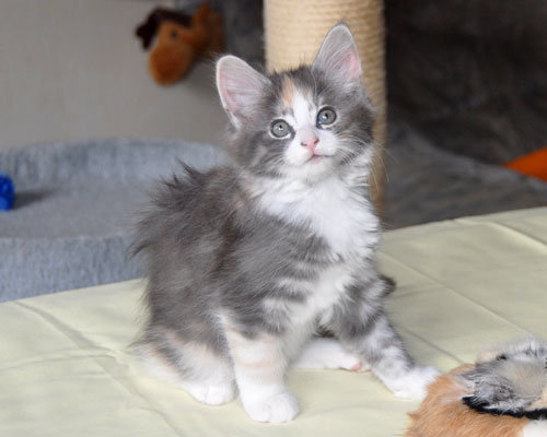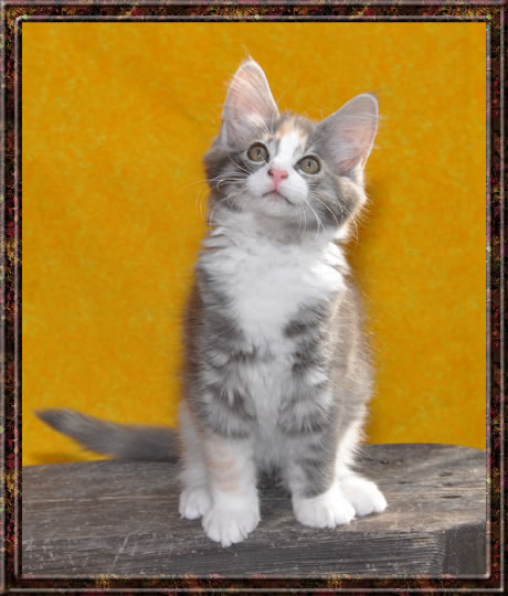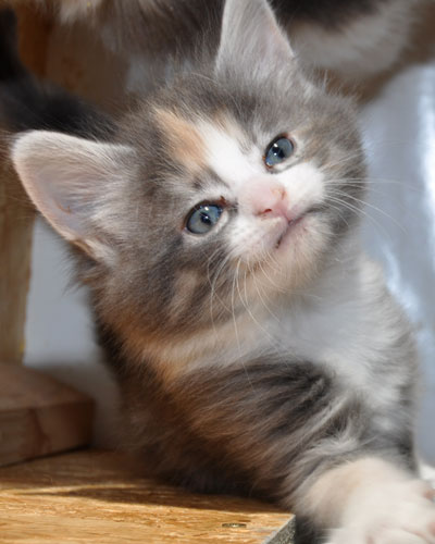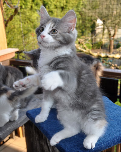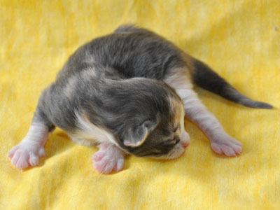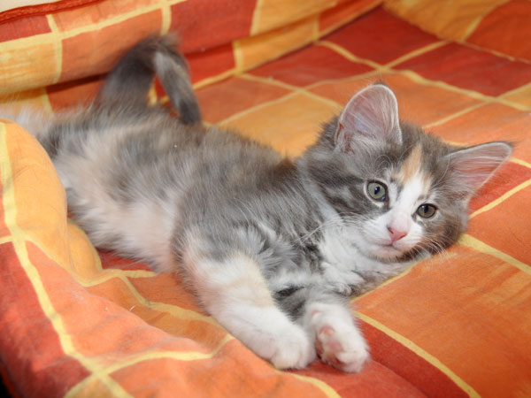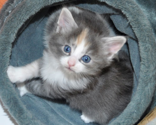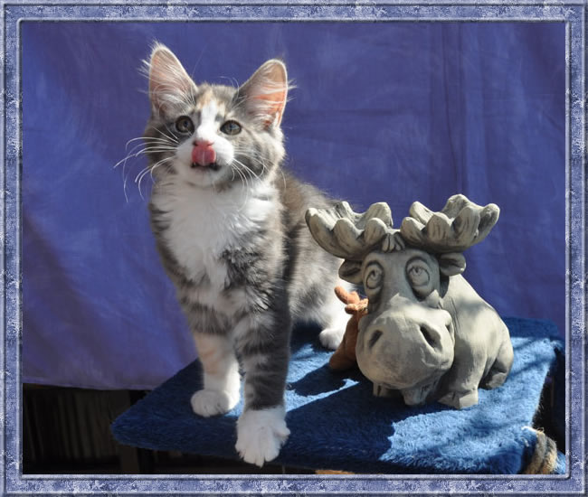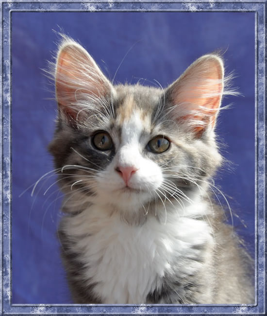Dunja's von Creme durchsetztes Blau ist etwas dunkler als bei Ihren Schwestern. Besonders apart ist ihre 2-farbige Stirnzeichnung.