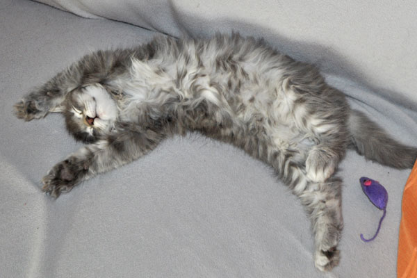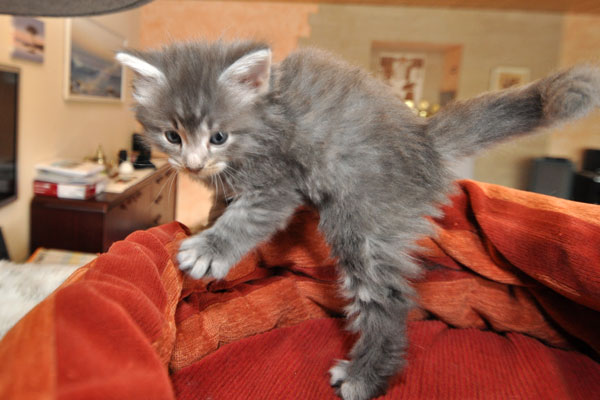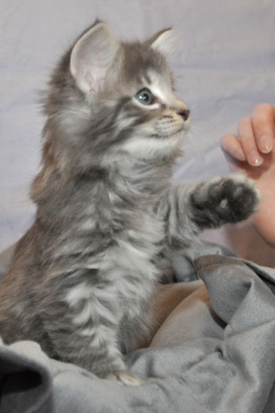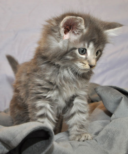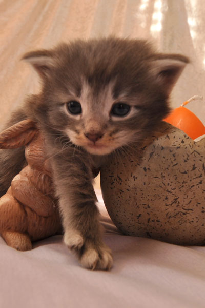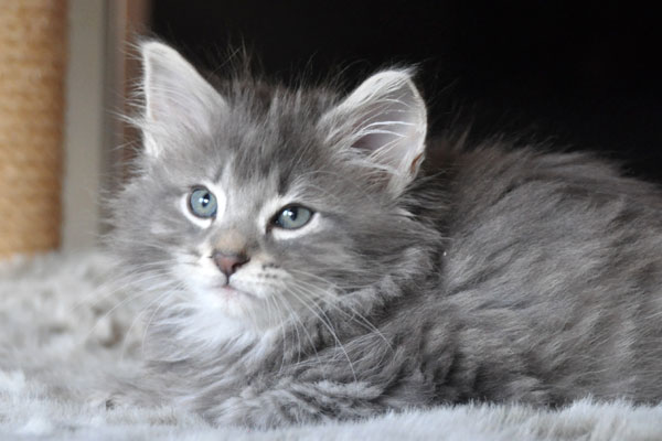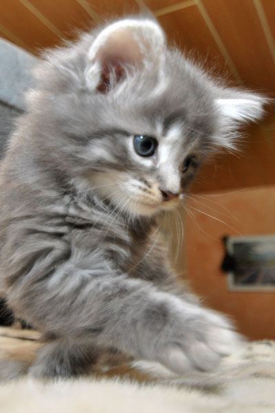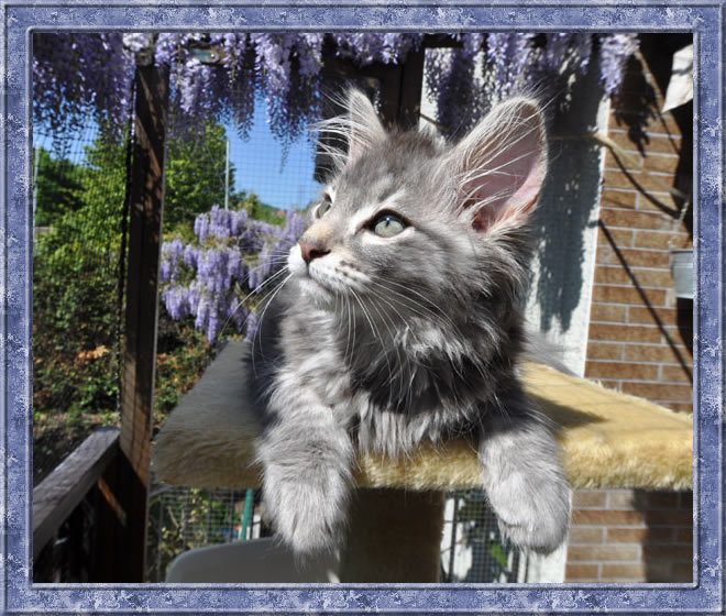 Giovanni lässt gerne mal seinen Schwestern den Vortritt, er scheint eher der zurückhaltend abwartende Typ zu sein. Wir vermuten mal, dass er den gutmütig treuen Charakter seines Vaters übernommen hat. Bereits kurz nach der Geburt leuchteten seine Zehenspitzen silbrig-hell und deuten an, dass er mal ein schönes silbernes Unterkleid tragen wird.